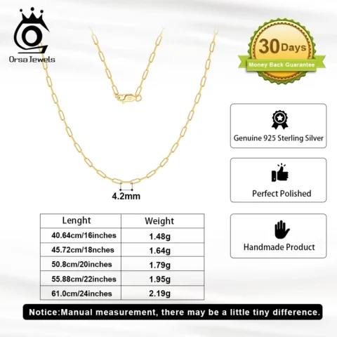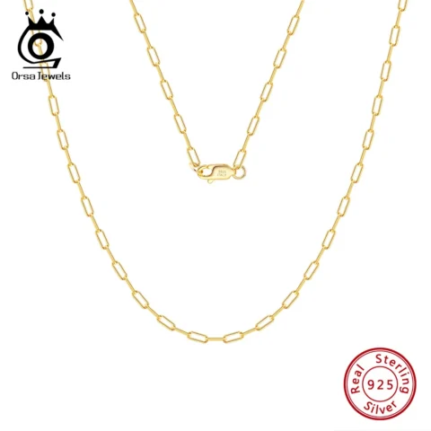 ORSA JEWELS 14K Gold 925 Sterling Silver 1.8mm Paperclip Neck Chain Fashion Link Chain Necklaces for Women Dainty Jewelry SC39