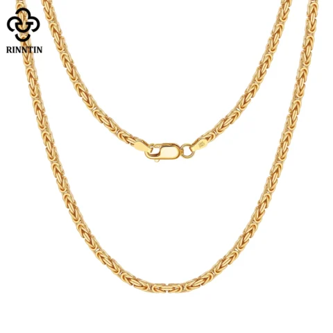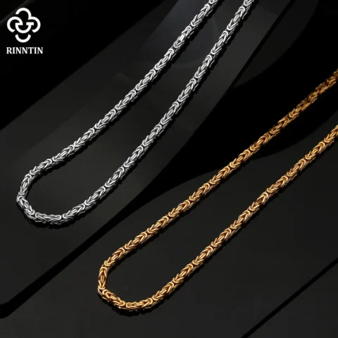 Rinntin 925 Sterling Silver Italian 2.5mm Flat Byzantine Link Chain Necklace for Women Vintage Silver Dainty Jewelry SC79