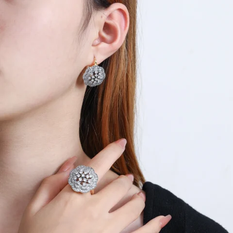 Polygon Inlay Shiny Zircon Hollow Fashion Copper Plated 18K Gold Earrings Ring suit Women Niche Light Luxury Party Decoration