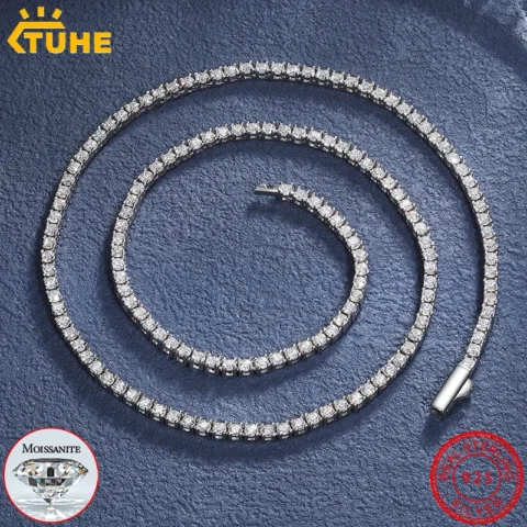 TUHE Unisex 2mm-2.5mm-3mm VVS1 Moissanite Tennis Necklace S925 Silver Diamond Necklaces For Men Women Pass Diamonds Test