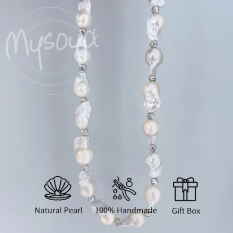 MYSOYA 14-18mm White Baroque Freshwater Pearl Necklace With Gift Box Perfect Gift For Wedding Birthday Christmas New Year