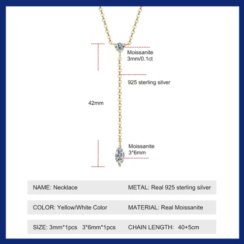 Smyoue 18k Plated 1CT 2CT 3CT Pear Cut Moissanite Necklace for Women Classic Lab Diamond Pendant GRA Sterling Silver 925 Chain