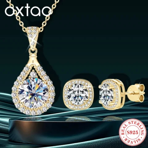 IOGOU Luxury 6.0CTW 8MM VVS1 Moissanite Jewelry Set 925 Silver Infinity Pendant Necklace Drop Hoop Earrings Sets for Women Gifts