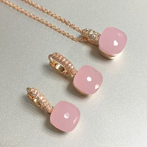 Original 2025 Fine Jewelry Set for Women Green Crystal Pink Crystal Geometric Bracelet Octagonal Cut Crystal Romantic Gift