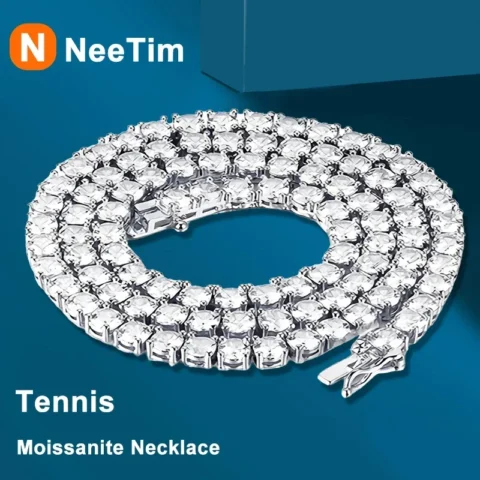 NeeTim 925 Sterling Silver Real Moissanite Tennis Necklace Bracelet for Women Men Lab Diamonds Neck Chains Necklaces