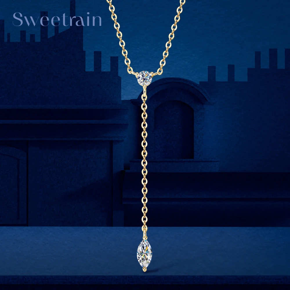 Sweetrain Marquise Cut Moissanite Necklaces Long Tassel Clavicle Chains Necklace for Women 925 Sterling Silver Jewelry Collares