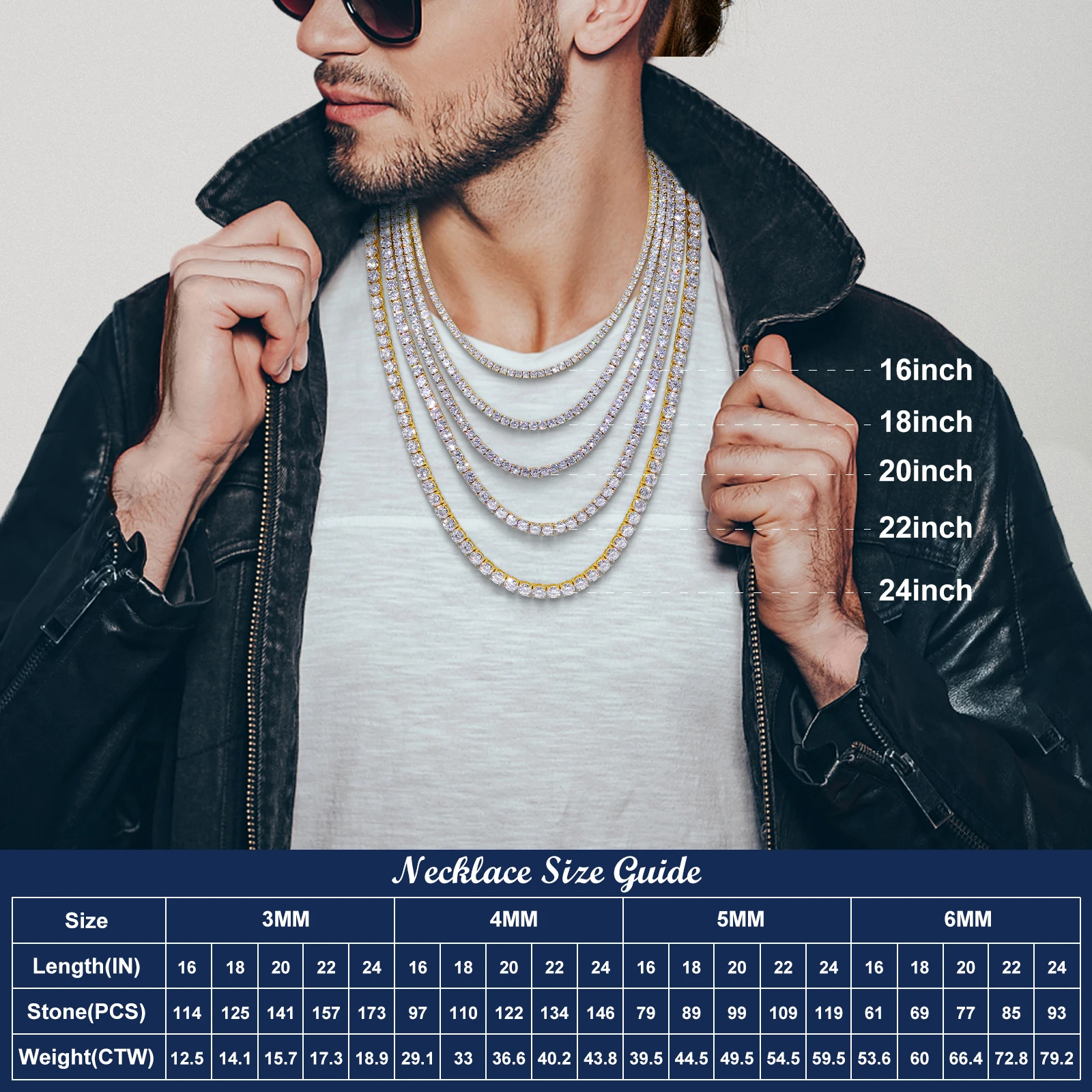 TUHE Unisex 2mm-2.5mm-3mm VVS1 Moissanite Tennis Necklace S925 Silver Diamond Necklaces For Men Women Pass Diamonds Test
